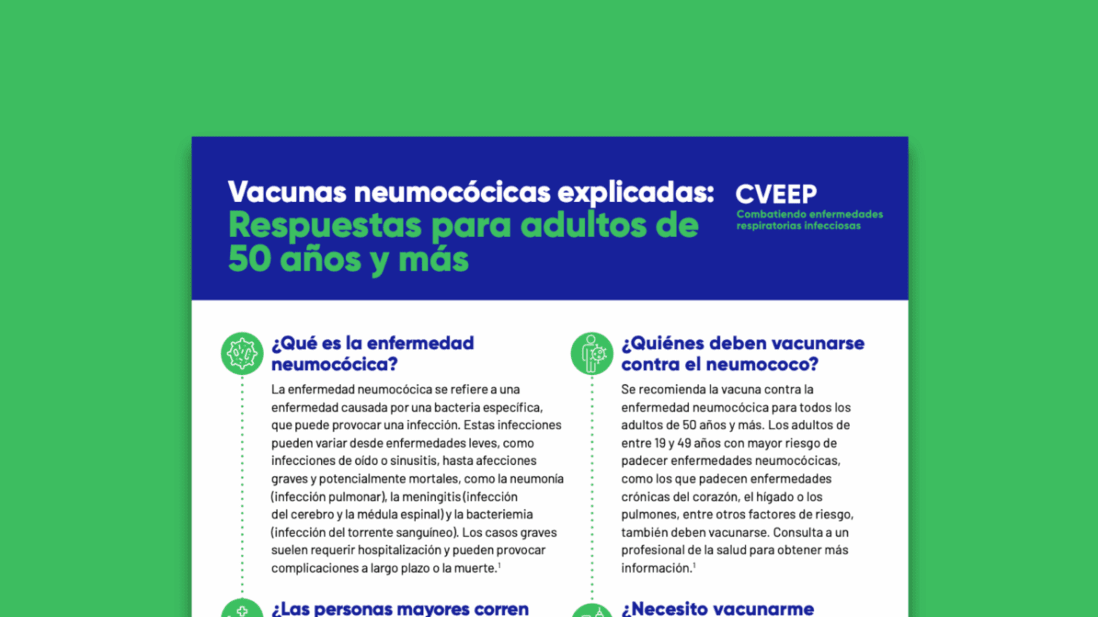 Vacunas neumocócicas explicadas: respuestas para adultos de 50 años y más - CVEEP Skip to main content
